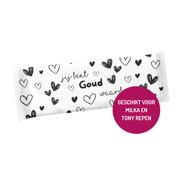 Maak van een chocoladereep een uniek cadeau met de chocolade wikkel 'Jij bent goud waard'. Perfect voor verjaardagen, bedankjes of gewoon om iemand een hart onder de riem te steken.