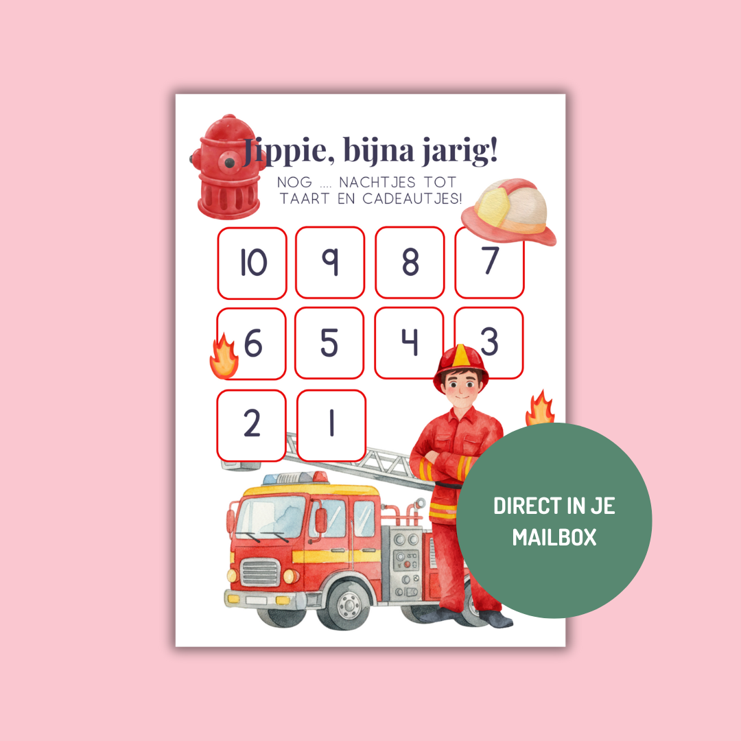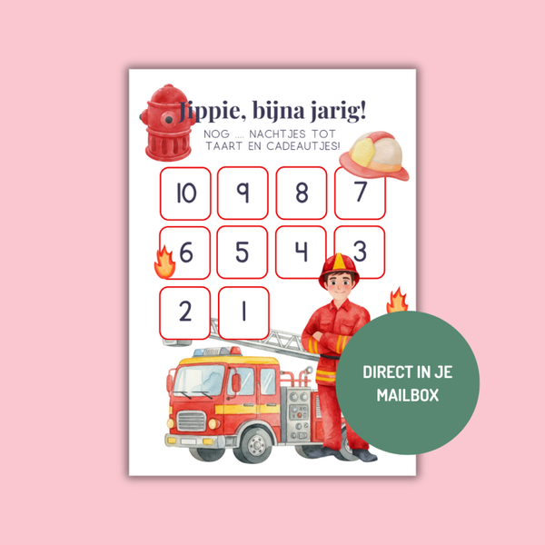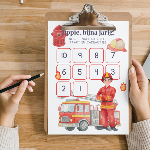 Aftelkalender verjaardag - Brandweer - printable